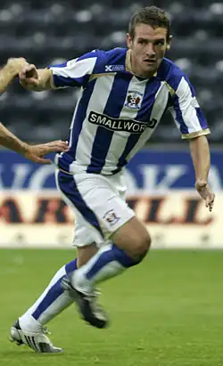 In the 2006–07 season, in October 2006, Bryson scored in a 3–1 victory over Greenock Morton in a Scottish Challenge Cup semi-final, which sent Clyde to their first major final in 48 years.[22] Bryson started the final the following month against Ross County, which Clyde lost on penalties.[23] Bryson, along with clubmate Neil McGregor, was selected for the SPFA First Division Team of the Year.[24] Bryson's contract expired at the end of the season, and in January 2007, Billy Davies, then-manager of his future club Derby County, took him on a week's trial.[25] However, Davies decided not to sign him permanently.[26] In February, Scottish Premier League club Kilmarnock approached Bryson[27] and in May, Kilmarnock manager Jim Jefferies confirmed that talks were ongoing.[28] Bryson had rejected Clyde's offer of a new contract[28] and thus left Clyde at the end of the 2006–07 season, having made 114 appearances in all competitions, scoring 12 goal.[29]