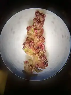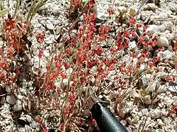 Crassula connata is a succulent plant in the family Crassulaceae.[1][2] It is known by the common names sand pygmyweed and pygmy stonecrop. It is a very small plant which grows in patches on the ground, especially in rocky areas. It is also sometimes associated with vernal pool plant communities. The stems are a few centimeters in length and are covered with tiny fleshy pointed leaves. Each leaf is only millimeters long. The plant is green when new and it matures to shades of pink and red. It is found in western North America and in parts of Central and South America.