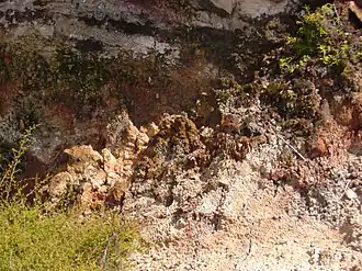 In 1859 Ferdinand von Hochstetter, an Austrian geologist who travelled through the area, reported a colossal column of steam from the Karapiti Blowhole (fumarole), observable from about 20 km away. It was difficult to approach because steam vents and springs covered the valley floor and the ground was warm, soft, iron-stained clay for great distances around.[1] By the beginning of the 20th century the Blowhole was a tourist attraction, albeit not of the level of the nearby Wairakei Geyser Valley.[2] It is worthwhile reading the "Impression of a Trip" in 1927, in which the Karapiti Blowhole is named "the safety valve of the North Island":