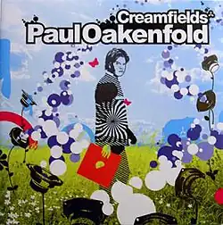 In August 1998, popular Liverpool club night Cream launched an outdoor annual electronic music festival, Creamfields, to take place each August bank holiday. At the time, Oakenfold was a resident DJ at Cream. The successful inaugural event received an attendance of 25,000 festival goers to Winchester in Hampshire, England.[2] For its second edition in 1999, Creamfields moved to the Old Liverpool Airfield,[3] where it remained until 2006.[4] By 2004, the festival's attendance had largely increased, reaching as much as 200,000 attenders each year.[5] For the third event in 2000, Creamfields released a double DJ mix album on Virgin Records, simply titled Creamfields, which reached number 5 in the UK Compilation Chart.[1] The compilation was a studio mix but commemorated the event. For the fourth event in 2001, Creamfields released another album with the same name mixed by Seb Fontaine and Yousef, who appeared at that year's event, although this release was less successful, reaching number 27 in the UK Compilation Chart,[1] and receiving a mixed to negative review from Dean Carlson of AllMusic.[6] The lesser success of this release halted the series, and no album was released for the fifth event in 2002.
