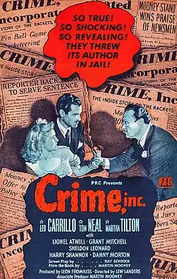Crime, Inc. is a 1945 American film noir crime film directed by Lew Landers starring Leo Carrillo, Tom Neal and Martha Tilton.