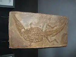 Crocodilaemus is an extinct genus of pholidosaurid mesoeucrocodylian.[1] Fossils have been found from the Cerin Lagerstätte of eastern France and are of late Kimmeridgian age. The depositional environment in Cerin at the time is thought to have been the bottom of a lagoon that was enclosed by an emergent reef complex, evidence of the shallow tropical sea that covered much of western Europe during the Jurassic period.[2]