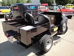 Production for 1939 was 2,017 units; however, only 422 cars were built in 1940.[7][12] For 1941 a range of new, body-style variations of the 48-inch (1.22 m) wide[12] car were introduced to expand the line-up: a station wagon, two panel vans (one called the "Parkway Delivery" had no front cabin roof), and a pick-up truck and "Covered Wagon" model that could convert into a truck by means of a removable back seat and detachable soft-top over the rear section.[11] Crosley built nearly 2,300 cars in 1941.[12] When the company introduced its first metal-topped model, the "Liberty Sedan," for 1942, pricing across the model range was $299 to $450.[11]