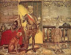 In August 1628, Christian IV pawned the crown and other royal regalia with three Holstein noblemen. Christian IV's own regalia were later redeemed, unlike the old regalia of which only Frederick III's Sword of State seems to have been redeemed. In 1633, Christian IV had a crown repaired in Hamburg.[1]