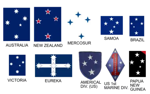 Cruzeiro has not always used its official crest on its shirt. In 1959, instead of using its crest, the club opted to simply put the five stars from the Southern Cross on its shirt.[28] This was done until 2000, when the actual crest was again used.[28] In 2002 and in part of 2003 the loose stars were used. Part way through 2003 a new shirt that contained the actual crest was introduced, but instead of just using the regular crest the shirt featured two Copa Libertadores trophies on top of the crest. In 2004 a similar design was used, but now featured a crown, symbolic of the Triple Crown on top of the two trophies.[28] Since 2007 the club has used the "loose stars" design on home shirts.[28] None of these designs actually became the official club crest.