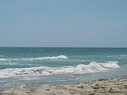 In North Carolina, the Crystal Coast is an 85-mile stretch of coastline that extends from the Cape Lookout National Seashore, which includes 56 miles of protected beaches, southwestward to the New River. The Crystal Coast is a popular area with tourists and second-home owners in the summer, with a name coined by the Carteret County Tourism Development Authority.[1]