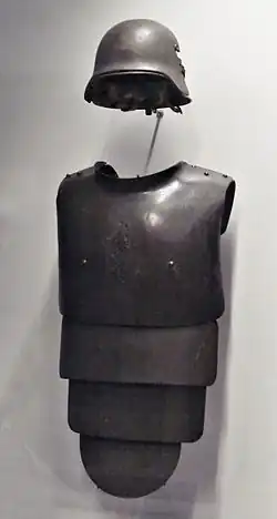For parade purposes, the Prussian Gardes du Corps and other corps wore cuirasses of richly decorated leather.[4] The Pontifical Swiss Guard still wear cuirasses for swearing-in ceremonies, Christmas and Easter.