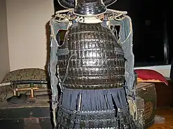 Cuirasses were manufactured in Japan as early as the 4th century.[5] Tankō, worn by foot soldiers, and keikō, worn by horsemen, were both pre-samurai types of early Japanese cuirass constructed from iron plates connected by leather thongs. During the Heian period (794–1185), Japanese armourers started to use leather as a material and lacquer for weatherproofing.