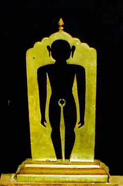 In Jainism, the Tirthankaras ("ford-maker") represent the true goal of all human beings.[22] Their qualities are worshipped by the Jains. Images depicting any of the twenty four Tirthankaras are placed in the Jain temples. There is no belief that the image itself is other than a representation of the being it represents. The Tirthankaras cannot respond to such veneration, but that it can function as a meditative aid. Although most veneration takes the form of prayers, hymns and recitations, the idol is sometimes ritually bathed, and often has offerings made to it; there are eight kinds of offering representing the eight types of karmas as per Jainism.[23] This form of reverence is not a central tenet of the faith.