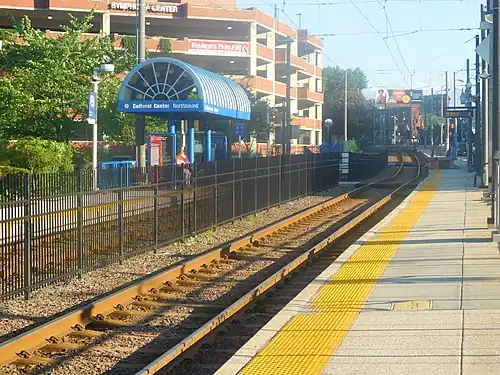 Cultural Center station is a Baltimore Light RailLink station located along Howard Street in the Mount Vernon neighborhood of Baltimore, Maryland, adjacent to the Joseph Meyerhoff Symphony Hall. It has two side platforms served by two tracks. The station opened on April 2, 1992, as part of the first phase of the system.