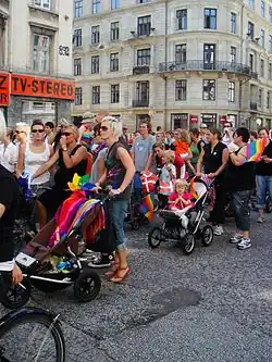 Public displays of affection between gay partners are less likely to provoke disapproval, even as compared to other liberal Western countries.[44] As such, Copenhagen is a popular destination for homosexual and bisexual travellers.[45] The main gay and lesbian festivals of the year are the Copenhagen Pride Parade and the Gay & Lesbian Film Festival. Copenhagen has been host to the 2009 World Outgames.