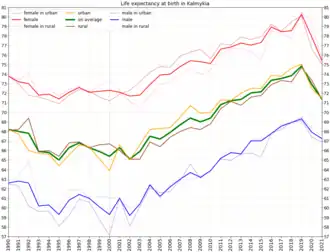 - ^ "Ожидаемая продолжительность жизни при рождении" [Life expectancy at birth]. Unified Interdepartmental Information and Statistical System of Russia (in Russian). Archived from the original on 20 February 2022. Retrieved 28 June 2022.