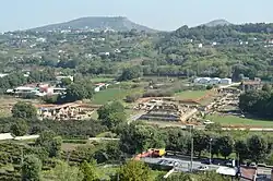 Cumae (Ancient Greek: Κύμη, romanized: (Kumē) or Κύμαι (Kumai) or Κύμα (Kuma);[1] Italian: Cuma) was the first ancient Greek colony of Magna Graecia on the mainland of Italy and was founded by settlers from Euboea in the 8th century BCE. It became a rich Roman city, the remains of which lie near the modern village of Cuma, a frazione of the comune Bacoli and Pozzuoli in the Metropolitan City of Naples, Campania, Italy. The archaeological museum of the Campi Flegrei in the Aragonese castle contains many finds from Cumae.