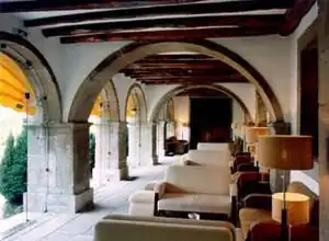 Charles I of Spain and V of the Holy Roman Empire (1500-1558), king of Spain from 1516 to 1556 and emperor of the Holy Roman Empire from 1520 to 1558, added two columns of Hercules that symbolize the two empires of Europe and America carrying each one, two rolled bands, finishing off on the cusp with a crown, the band with the "Plus Ultra" motto refers to the discovery of America or New World, and the crown, to the conquest of this territory.
