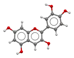 Cyanidin is a natural organic compound. It is a particular type of anthocyanidin (glycoside version called anthocyanins). It is a pigment found in many red berries including grapes, bilberry, blackberry, blueberry, cherry, chokeberry, cranberry, elderberry, hawthorn, loganberry, açai berry and raspberry.[1] It can also be found in other fruits such as apples and plums, and in red cabbage and red onion. It has a characteristic reddish-purple color, though this can change with pH; solutions of the compound are red at pH < 3, violet at pH 7-8, and blue at pH > 11. In certain fruits, the highest concentrations of cyanidin are found in the seeds and skin.[2] Cyanidin has been found to be a potent sirtuin 6 (SIRT6) activator.[3][4]