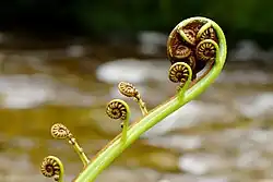 The order Cyatheales, which includes most tree ferns, is a taxonomic order of the fern class, Polypodiopsida.[3] No clear morphological features characterize all of the Cyatheales, but DNA sequence data indicate the order is monophyletic. Some species in the Cyatheales have tree-like growth forms from a vertical rhizome, others have shorter or horizontal expanding rhizomes.