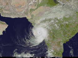 ![]() Cyclone Tauktae near peak intensity approaching Gujarat in India on 17 May | |