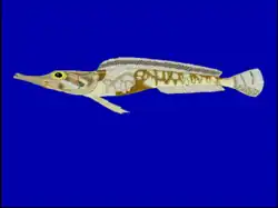 Mawson's dragonfish has a slender, naked body with the only scales being in the two lateral lines, the upper lateral line is wholly made up of perforated scales. There is a flattened ridge on the operculum which divides towards the margin. They have a thin band of conical teeth in the jaws. The dorsal fin has 61-66 soft rays while the anal fin has 36-38. In alcohol the overall colour is brown with darker saddles and bars, the median fins are darker than the pectoral and pelvic fins.[4] This species grows to a length of 41 cm (16 in) standard length.[5]