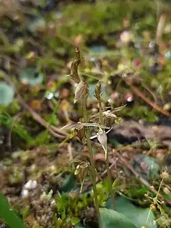 Cyrtostylis tenuissima, commonly known as dwarf gnat orchid[2] or dwarf mosquito orchid,[3] is a species of orchid endemic to Western Australia. It usually has a single more or less round leaf and a flowering spike with up to fourteen small, green flowers with a greenish brown to pinkish, wedge-shaped labellum.