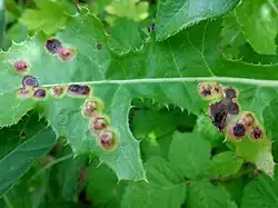 Cystiphora sonchi is a species of gall midge in the family Cecidomyiidae.[1][2][3] It is native to Eurasia, but has been introduced to North America as a biocontrol of sow thistles.[4] The larvae cause small, circular galls on the leaves of the host plants.[4][5] Several species of parasitic wasps use the larvae as hosts.[4]