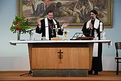 Membership figures of the church are not public. In a 2020 interview, Patriarch Tomáš Butta said the church had around 60,000 registered members.[8] In 2021 censuses conducted in the Czech Republic and Slovakia 24,191 people self-identified as adherents of the church, 23,610 in the Czech Republic and 581 in Slovakia. There are 304 congregations divided into five dioceses situated in Prague, Plzeň, Hradec Králové, Brno, and Olomouc in the Czech Republic and three congregations in the Bratislava Diocese in Slovakia. There are approximately 266 priests in active ministry, of whom 130 are women. Candidates of ministry are prepared at the Hussite Faculty of Theology at Charles University in Prague.[9]