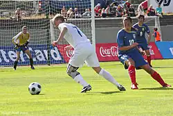 ![]() Dóra (nearest the ball) versus Serbia in 2009 | |||