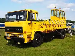 The DAF F218 and later F220 is the name of a modular cab used on a series of medium-duty trucks produced by the Dutch manufacturer DAF from early 1970 until the mid-1990s. The names reflect the cab width in centimetres, at 218 and 220 cm (85.8 and 86.6 in) respectively. DAF's first tilting cab design, all in steel, it also benefitted from a new 8.25 L (503 cu in) diesel inline-six. After a thorough facelift with a new front clip in the style of the larger F241 series, the cab was renamed the F220 in 1976. The range was originally sold as the F1600 or F2000, with the new model F220 marketed as the F2300. Gradually, a number of other iterations appeared, with the range eventually stretching from the 1700 to the intercooled 2700 ATi.[1]