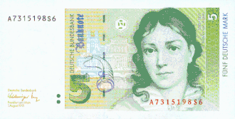 | DM 5 | €2.56 | 122 × 62 | Green | Bettina von Arnim; Berlin | Brandenburg Gate | 1991 | 27/10/1992 | |||