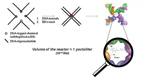 - ^ Heitner TR, Hansen NJ (November 2009). "Streamlining hit discovery and optimization with a yoctoliter scale DNA reactor". Expert Opinion on Drug Discovery. 4 (11): 1201–13. doi:10.1517/17460440903206940. PMID 23480437. S2CID 20881306.