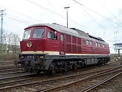 The Class 132s entered service in 1974, 709 locomotives of this class were built. Under the Deutsche Reichsbahn the maximum allowable line speed was limited and so in operation these locomotives had a top speed of 120 km/h (75 mph).