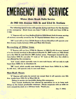 - ^ "Water Main Break Disrupts IND Subway Service & PATH" (PDF). The Bulletin. 5 (6). Electric Railroaders' Association: 8. December 1962. Retrieved March 24, 2025.