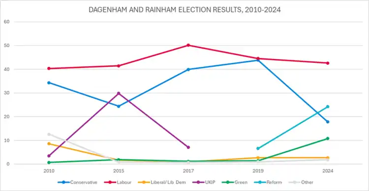 In 2019, Cruddas' majority was cut to just 293 votes, the lowest Labour majority in Dagenham ever, which has been represented by Labour MPs since 1945.