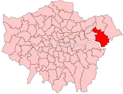 The constituency may retain significant pockets of poverty indicated by a high ranking in the Index of Multiple Deprivation compiled in the year 2000 however average incomes were in four large wards close to the national average.[2] The London Borough of Barking and Dagenham saw the most rapid decrease in people of White British ethnicity in the 10 years to the 2011 census, of 31.4 percentage points. However the same dataset shows that 58.3% of people are white in the seat, which is similar to the Greater London average. An established area of settlement for British people of Asian ethnicity with 15.9% of this background, the neighbouring London Borough of Newham has a much higher proportion of residents with Asian heritage, 43.5%.[3]