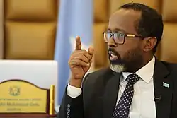 Ambassador Dahir Mohamud Gelle (Somali: Daahir Maxamuud Geele, Arabic: طاهر محمود جيلي) is a Somali diplomat and politician. Ambassador Dahir was born in Mogadishu in 1966. Having completed his primary and secondary education in Mogadishu, Dahir earned a Bachelors of Arts in Jurisprudence and Law at Al-Azhar University in Cairo Egypt. He later joined the Institute of Arab Research and Studies for a graduate Diploma in Political Science, and a Master of Arts in Political Science. Dahir has accumulated knowledge from years of practice in the public, private and voluntary sectors. In his service in the public sector, Dahir has served as the Director of Foreign Relations Department of the Ministry of Justice and Religious Affairs, been a member of the Somali Federal Parliament, become twice the Minister for Information.[1] On a one-year term, Dahir led the Daljir Forum for national dialogue as the chairperson. He has been the Somali Ambassador to Saudi Arabia from 2015 to 2018.[2] In private sector practice, Dahir served as the Managing Director of Ar-risaala Radio station. Also, he is the founder of the Holy Quran radio station. Between 1995 and 2000, he worked for a charity aimed to alleviate the suffering of the needy people.