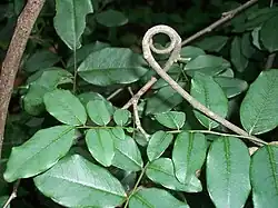 Dalbergia obovata (climbing flat bean) is a robust shrub or climber in the family Fabaceae, and is native to Southern Africa.[2]