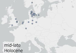 Historically, the Dalmatian pelican was far more widespread across Europe than it is today. Subfossil remains dating back to the Holocene climatic optimum, approximately 7400 to 5000 years BP have been found as far north as Denmark. Additional remains dated to 1900–600 BP have been uncovered in central Europe, the Netherlands, and Great Britain.[35] These finds suggest that the species once ranged across much of the continent during periods of warmer climate.