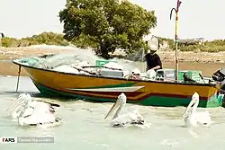 In some regions, conflict with fisheries has led to localized persecution of Dalmatian pelicans, which are occasionally shot by fishermen who perceive them as competitors for declining fish stocks.[38] While such killings tend to occur on a small scale, the perception that pelicans significantly deplete fish populations remains widespread in many fishing communities.[33][34] However, statistical comparisons have shown that the composition of pelican diet differs notably from fishery yields, suggesting only limited direct competition.[52] At Karavasta Lagoon in Albania, Dalmatian pelicans were estimated to consume between 13.7% and 16.5% of the mean fishery catch in 1992, and between 19.4% and 23.3% in 1993, although the methods and assumptions used in these calculations have been questioned.[52]