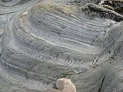 Folded Dalradian phyllites of the Ediacaran to lower Cambrian Ben Ledi Grit Formation, part of the Southern Highland Group | |