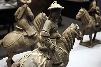 Ming dynasty pottery figures wearing damao.