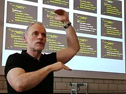 Damian Conway giving a talk in Lausanne in 2020