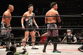 Various members of the unit are known to have made sporadic appearances in other promotions. On June 13, 2017, Ishikawa and Endo teamed up to defeat Nextream (Kento Miyahara and Yuma Aoyagi) on the second night of the Dynamite Series 2017, an event promoted by All Japan Pro Wrestling (AJPW).[38] At Machida Pro-Wrestling Festival Vol. 1, a freelance show promoted by the Japanese independent scene on September 8, 2017, Sasaki and Endo represented the unit as the defeated the team of Speed Of Sounds (Hercules Senga and Tsutomu Oosugi) in a tag team match, as well as Ishikawa teaming up with Masashi Takeda to pick up a victory over Big Japan Pro Wrestling's Daisuke Sekimoto and Yuko Miyamoto.[39] At Great Voyage in Yokohama Vol. 2, an event promoted by Pro Wrestling Noah on December 16, 2018, Nobuhiro Shimatani, who represented the stable, teamed up with Kazusada Higuchi and Kota Umeda in a losing effort to Atsushi Kotoge, Kenoh and Masa Kitamiya.[40] On May 4, 2019, at Mercury Rising, an event promoted by WWNLive, Sasaki, Takao and Endo defeated The Skulk (Adrian Alanis, A. R. Fox and Leon Ruff).[41] At Infinity: 2021 Spring, an event promoted by Active Advance Pro Wrestling (2AW) on February 7, Ishikawa represented the stable as he teamed up with Ryuki Honda in a losing effort to Kengo Mashimo and Tatsuya Hanami.[42]
