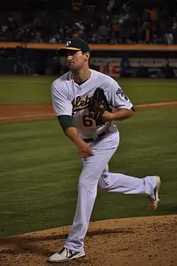 On June 14, 2013, he was brought up from Sacramento as Hideki Okajima was optioned down.[9] He had his first major-league win in relief of A.J. Griffin on July 2, 2013 against the Chicago Cubs.[10] In 33 games for the A's, he was 2-0 with a 1.38 ERA in 39 innings.