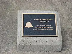 Monument to "Borneskolen" residential school, founded by early settlers of the colony in the Danish tradition of folk high schools, fostering the concept of learning for living.