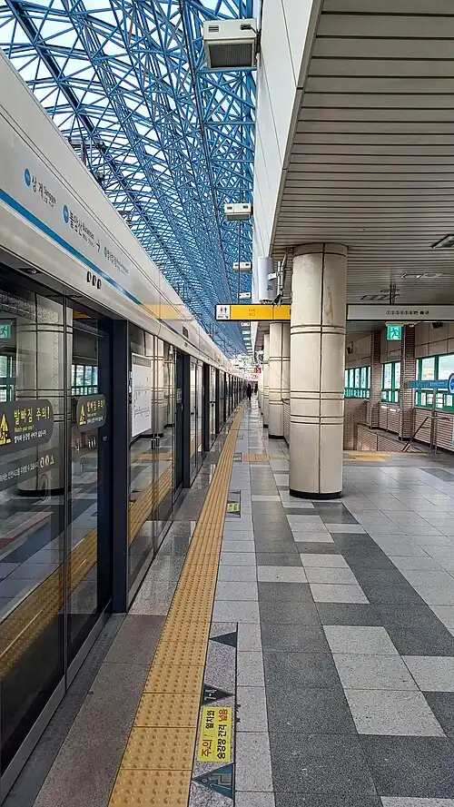 Buramsan station (Korean: 불암산역) is a station on Line 4 of the Seoul Metropolitan Subway network.[2] It was the northern terminus of Line 4, until 19 March 2022, when the line was extended to Jinjeop. It is an elevated station. The name of the subway station comes from its local name. The station was also known as Danggogae until 2024. Regional names refer to the pass that travelers carried over because of wild animals.[4]