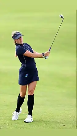 Daniela Yvonne Holmqvist (born 3 May 1988) is a Swedish professional golfer. She was in contention at the 2020 Women's British Open, holding the lead as the only player to finish under-par after 36 holes.[1]