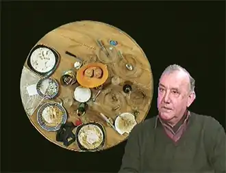 In 1960, Spoerri made his first "snare-picture". Spoerri later explained snare-pictures as follows: "objects found in chance positions, in order or disorder (on tables, in boxes, drawers, etc.) are fixed (‘snared’) as they are. Only the plane is changed: since the result is called a picture, what was horizontal becomes vertical. Example: remains of a meal are fixed to the table at which the meal was consumed and the table hung on the wall." His first "snare-picture", Kichka's Breakfast was created from his girlfriend's leftover breakfast. The piece is now in the collection in the Museum of Modern Art (MoMA) in New York City.[8][9] One snare-picture, made in 1964, consists of the remains of a meal eaten by Marcel Duchamp.[10] This work holds the auction price record for Spoerri, selling for €136,312 ($200,580) in January 2008, distantly followed by another snare-picture from 1972, which sold for €44,181 ($69,860) in April 2008.[11][12]