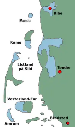 The Danish Royal Enclaves (Danish: kongerigske enklaver) were the territory of the Kingdom of Denmark which was located within the Duchy of Schleswig. After the Second Schleswig War in 1864, most of these areas were, like the rest of Schleswig, ceded to the Kingdom of Prussia.[1][2] Most of these areas were returned after the 1920 Schleswig plebiscites. Before the war of 1864, the Danish monarchy consisted of the Kingdom of Denmark and the duchies of Schleswig, Holstein and Lauenburg. Schleswig was a Danish fiefdom, while Holstein and Lauenborg were Holy Roman fiefdoms. All four areas belonged to the absolute monarch; but the government in Copenhagen was divided into the Danish Chancellery, which was responsible for the kingdom and finances, and the Schleswig-Holstein Chancellery, which was responsible for the duchies and foreign policy. The Kingdom and Duchies each had their own legislation and the official language was Danish in the Kingdom and German in the Duchies.