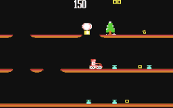 The proper level plays very much the same as the BBC/Electron version. Dennis rides across the storeroom's various platforms (although his only vehicle is now his motorcycle). As well as avoiding hazards, pieces of the Oscar drop down from the sky in parcels. The parcels open upon reaching a platform, revealing an Oscar piece, which Dennis can then collect. Dennis can obtain an extra life by obtaining all of the Oscar pieces, after which the Oscar restarts from scratch.
