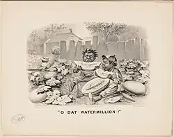 The lithographs represent Black Americans "as racist caricatures and ugly stereotypes" showing Black people as "backward, inept, and unable to adapt", according to the Smithsonian.[9] The artists include John Cameron and Thomas Worth.[9][12]: 22 According to the Smithsonian,[9]