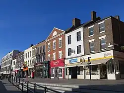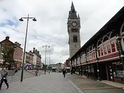In 2001, Darlington became the first place in England to allow same-sex civil ceremonies[20] and as of 2022, it hosts an annual Gay Pride Festival at venues across the town. A 2005 Darlington Borough Council project to pedestrianise areas of the town centre, this included some Victorian features along High Row.[21] In August 2008, a fire, in which nobody was killed, caused damage and weeks of closure until the damage was fixed for several shops (including Woolworths). The King's Head Hotel was also affected with damage to the roof and 100 bedrooms, the hotel was able to reopen in 2012.[22][23]